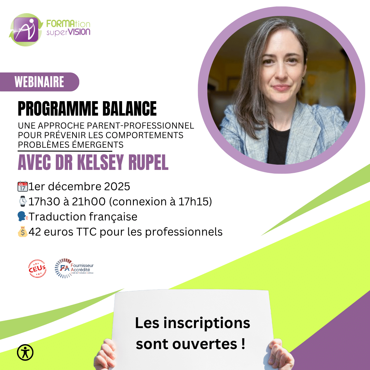 Les inscriptions et informations sont via ce lien : https://organisme-formavision.com/webinaire-balance-une-approche-parent-professionnel-pour-prevenir-les-comportements-problemes-emergents/